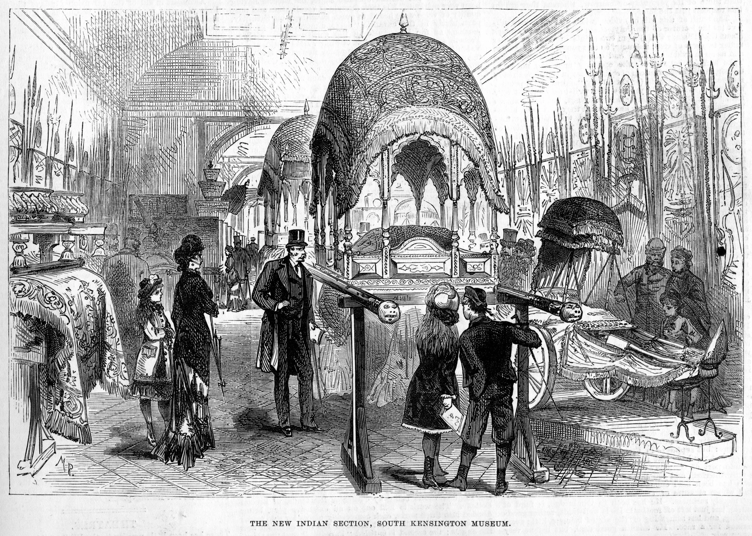 The New Indian Section, South Kensington Museum. (Note the extensive displays of weapons on the walls.) Illustrated London News, May 22, 1880,